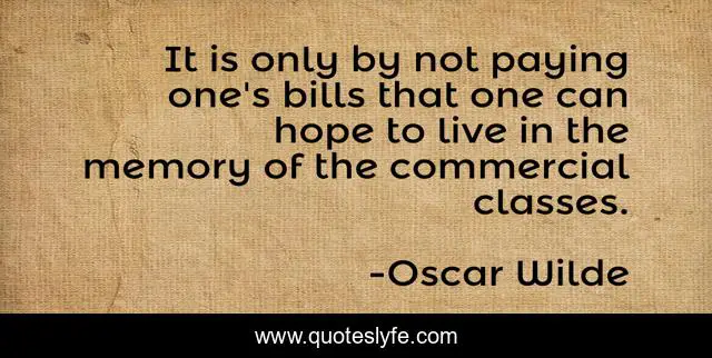 This page presents the quote "It is only by not paying one's bills that one can hope to live in the memory of the commercial classes.". Author of this quote is Oscar Wilde. This quote is about live, bills, memory,.