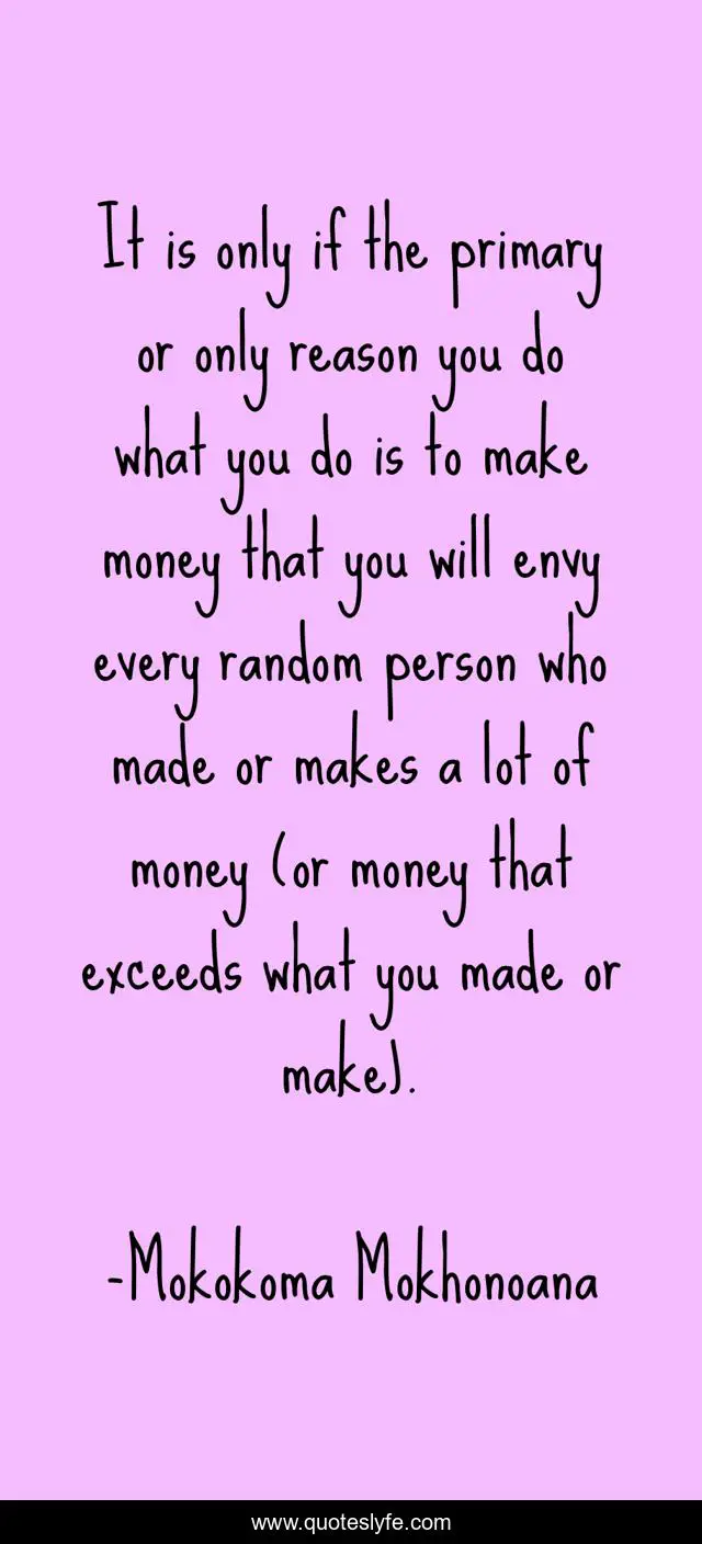 It is only if the primary or only reason you do what you do is to make money that you will envy every random person who made or makes a lot of money (or money that exceeds what you made or make).