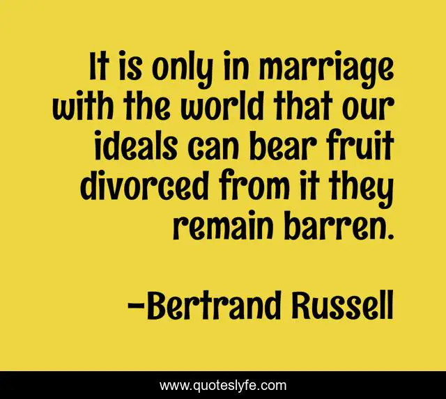 This page presents the quote "It is only in marriage with the world that our ideals can bear fruit divorced from it they remain barren.". Author of this quote is Bertrand Russell. .
