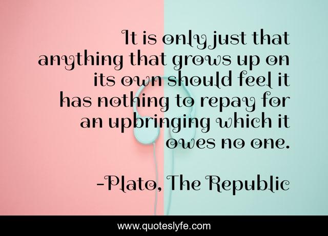 This page presents the quote "It is only just that anything that grows up on its own should feel it has nothing to repay for an upbringing which it owes no one.". Author of this quote is Plato, The Republic. This quote is about self-reliance, independence,.