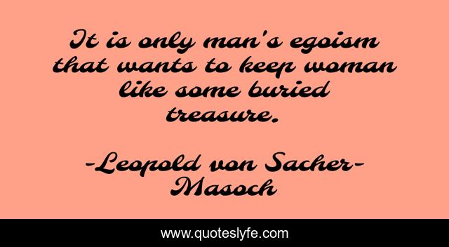 This page presents the quote "It is only man's egoism that wants to keep woman like some buried treasure.". Author of this quote is Leopold von Sacher-Masoch. This quote is about relationships, woman, egoism, treasures, ego, man,.