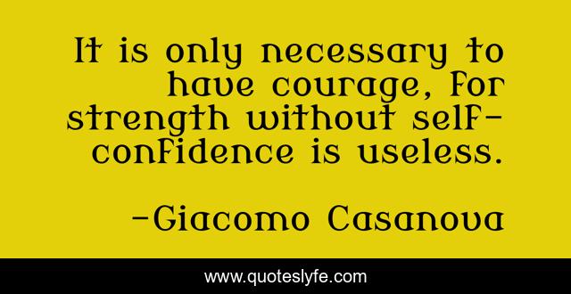 This page presents the quote "It is only necessary to have courage, for strength without self-confidence is useless.". Author of this quote is Giacomo Casanova. This quote is about courage, self-confidence,.