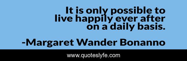 This page presents the quote "It is only possible to live happily ever after on a daily basis.". Author of this quote is Margaret Wander Bonanno. This quote is about basis, daily, wisdom, live, truth, happiness, happily-ever-after,.