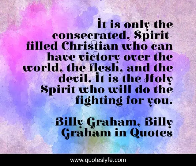 This page presents the quote "It is only the consecrated, Spirit-filled Christian who can have victory over the world, the flesh, and the devil. It is the Holy Spirit who will do the fighting for you.". Author of this quote is Billy Graham, Billy Graham in Quotes. This quote is about the-world, billy-graham,.