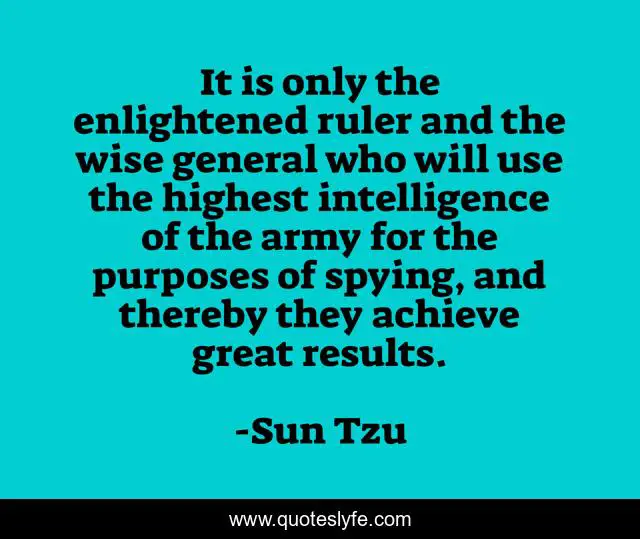 It is only the enlightened ruler and the wise general who will use the highest intelligence of the army for the purposes of spying, and thereby they achieve great results.