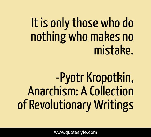 This page presents the quote "It is only those who do nothing who makes no mistake.". Author of this quote is Pyotr Kropotkin, Anarchism: A Collection of Revolutionary Writings. .