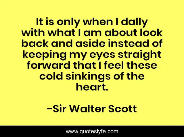 This page presents the quote "It is only when I dally with what I am about look back and aside instead of keeping my eyes straight forward that I feel these cold sinkings of the heart.". Author of this quote is Sir Walter Scott. .