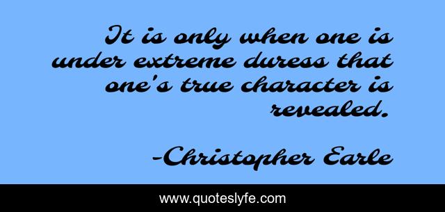 This page presents the quote "It is only when one is under extreme duress that one's true character is revealed.". Author of this quote is Christopher Earle. This quote is about personal-responsibility, philosophy, character, ethics, philosophy-of-life, morality,.