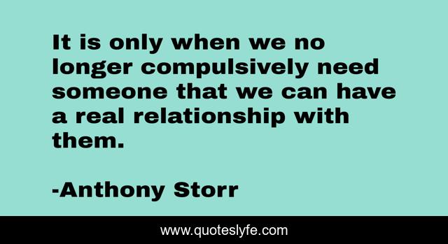This page presents the quote "It is only when we no longer compulsively need someone that we can have a real relationship with them.". Author of this quote is Anthony Storr. This quote is about real, need, someone,.