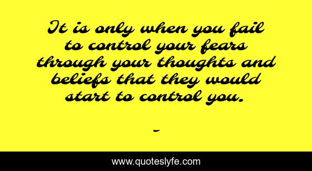 It is only when you fail to control your fears through your thoughts and beliefs that they would start to control you.
