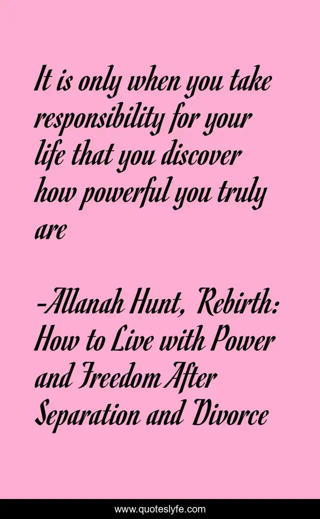"Allanah Hunt, Rebirth: How to Live with Power and Freedom After Separation and Divorce Quotes." Quoteslyfe.com, 2025. Fri. 05 Dec. 2025. <https://www.quoteslyfe.com/quote/It-is-only-when-you-take-responsibility-140718>.