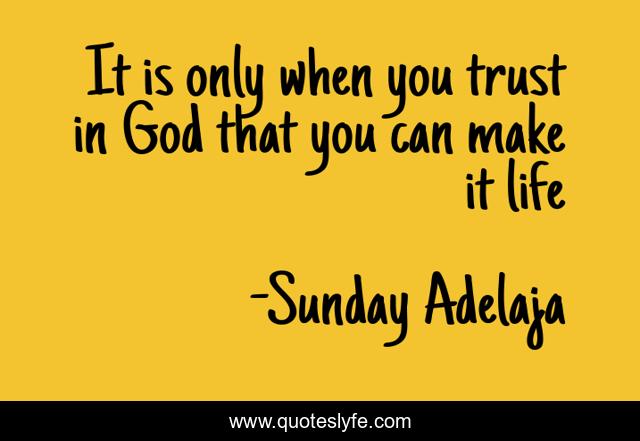 This page presents the quote "It is only when you trust in God that you can make it life". Author of this quote is Sunday Adelaja. This quote is about love, people, money, principles, trust, employment, worship, jobless, service,.
