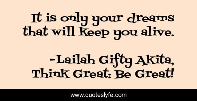 "Lailah Gifty Akita, Think Great: Be Great! Quotes." Quoteslyfe.com, 2025. Sat. 06 Dec. 2025. <https://www.quoteslyfe.com/quote/It-is-only-your-dreams-that-will-94865>.