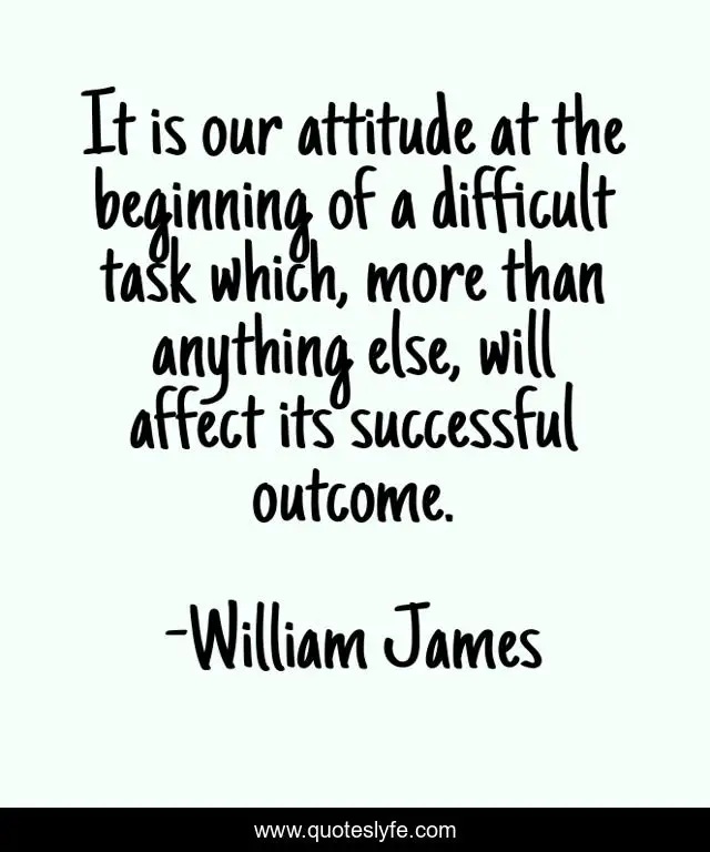 This page presents the quote "It is our attitude at the beginning of a difficult task which, more than anything else, will affect its successful outcome.". Author of this quote is William James. This quote is about successful, beginning,.