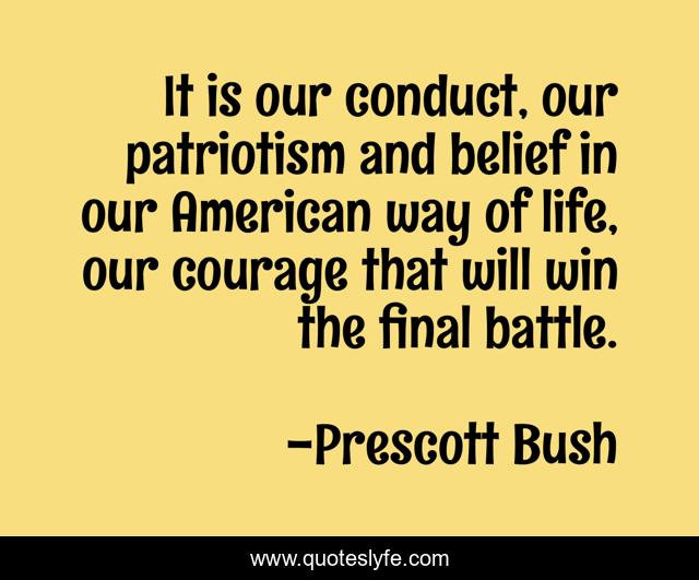 "Prescott Bush Quotes." Quoteslyfe.com, 2025. Sat. 06 Dec. 2025. <https://www.quoteslyfe.com/quote/It-is-our-conduct-our-patriotism-and-313821>.