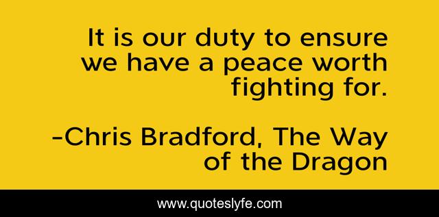 This page presents the quote "It is our duty to ensure we have a peace worth fighting for.". Author of this quote is Chris Bradford, The Way of the Dragon. This quote is about fightingfor, peace,.
