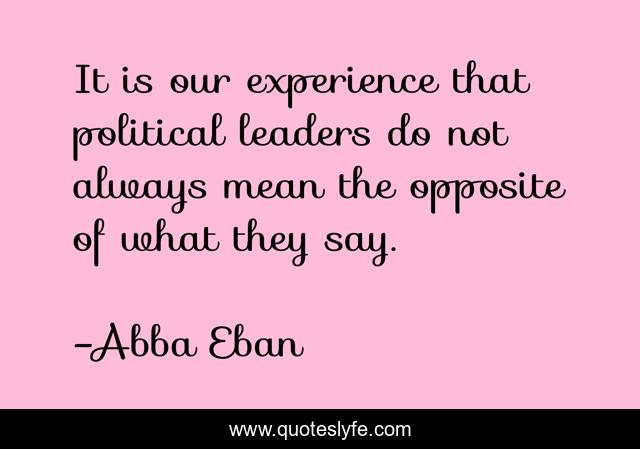 This page presents the quote "It is our experience that political leaders do not always mean the opposite of what they say.". Author of this quote is Abba Eban. This quote is about political, experience, mean,.