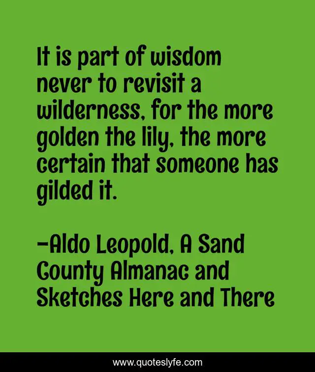 This page presents the quote "It is part of wisdom never to revisit a wilderness, for the more golden the lily, the more certain that someone has gilded it.". Author of this quote is Aldo Leopold, A Sand County Almanac and Sketches Here and There. This quote is about travel, wilderness, nature,.