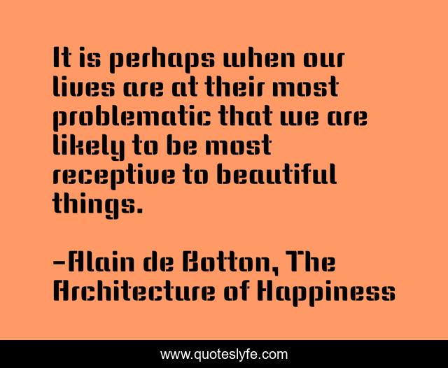 "Alain de Botton, The Architecture of Happiness Quotes." Quoteslyfe.com, 2025. Mon. 08 Dec. 2025. <https://www.quoteslyfe.com/quote/It-is-perhaps-when-our-lives-are-60533>.