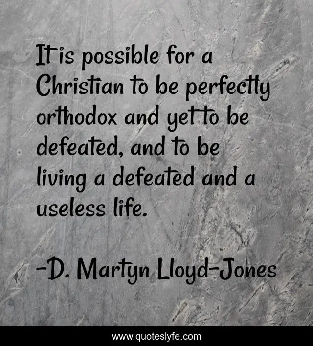 This page presents the quote "It is possible for a Christian to be perfectly orthodox and yet to be defeated, and to be living a defeated and a useless life.". Author of this quote is D. Martyn Lloyd-Jones. This quote is about orthodoxy, prayer,.