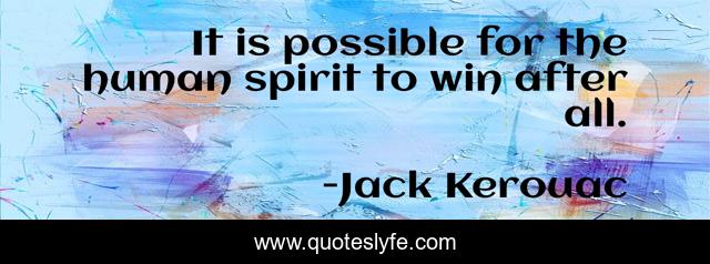 This page presents the quote "It is possible for the human spirit to win after all.". Author of this quote is Jack Kerouac. This quote is about enthusiasm, inspirational,.