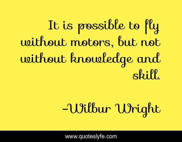 This page presents the quote "It is possible to fly without motors, but not without knowledge and skill.". Author of this quote is Wilbur Wright. This quote is about fly, skill, without,.