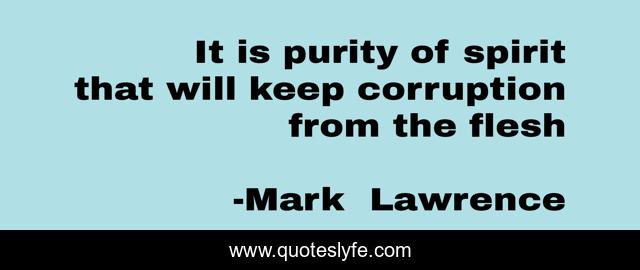 This page presents the quote "It is purity of spirit that will keep corruption from the flesh". Author of this quote is Mark Lawrence. This quote is about corruption, spirit,.