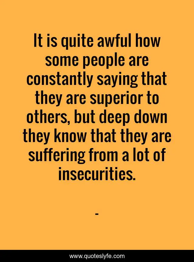It is quite awful how some people are constantly saying that they are superior to others, but deep down they know that they are suffering from a lot of insecurities.