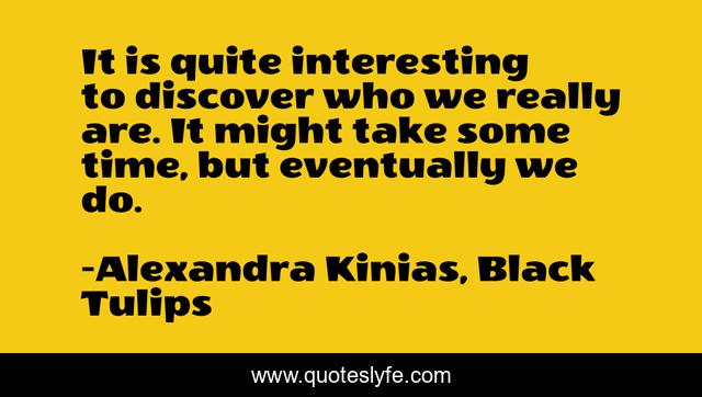 This page presents the quote "It is quite interesting to discover who we really are. It might take some time, but eventually we do.". Author of this quote is Alexandra Kinias, Black Tulips. .