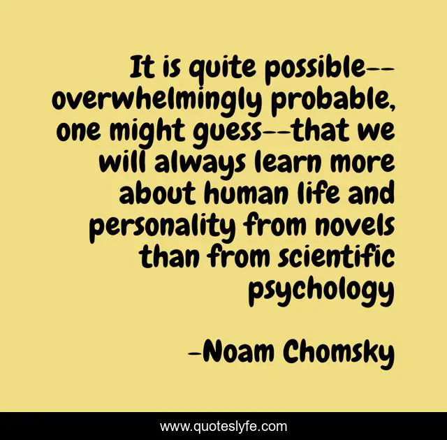 This page presents the quote "It is quite possible--overwhelmingly probable, one might guess--that we will always learn more about human life and personality from novels than from scientific psychology". Author of this quote is Noam Chomsky. This quote is about art, human-condition,.