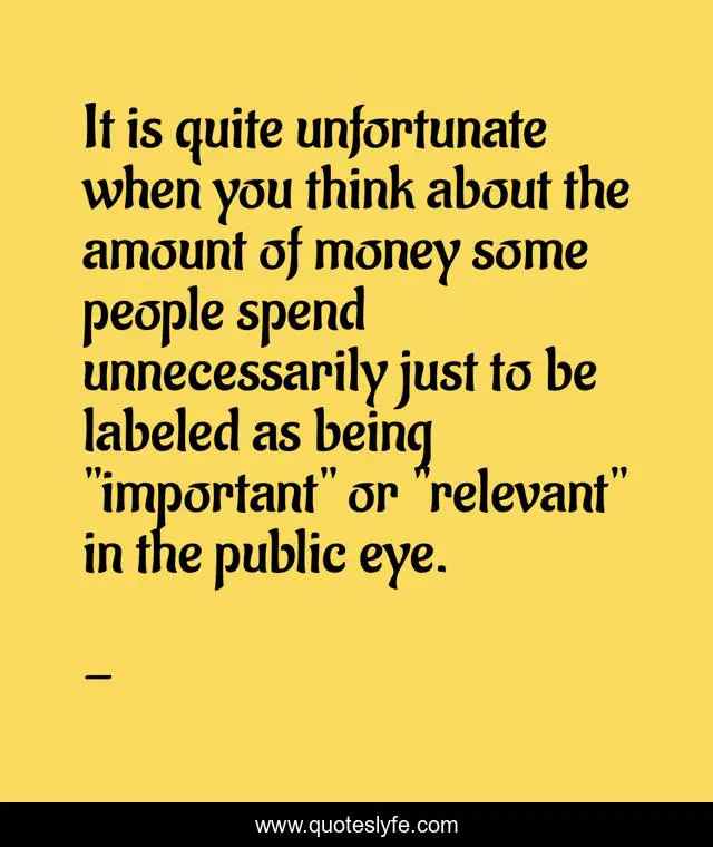 This page presents the quote "It is quite unfortunate when you think about the amount of money some people spend unnecessarily just to be labeled as being "important" or "relevant" in the public eye.". Author of this quote is . This quote is about public-eys, edmond-mbiaka, spending-money-to-gain-attention, spending-money-unnecessarily, seeking-to-be-labeled-important, seeking-for-public-approval, trying-to-feel-important,.