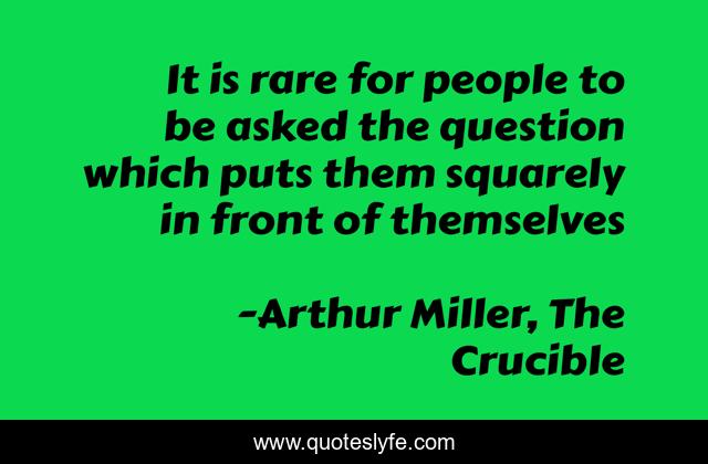 This page presents the quote "It is rare for people to be asked the question which puts them squarely in front of themselves". Author of this quote is Arthur Miller, The Crucible. This quote is about lessons, life, literature, plays, wisdom, truth,.