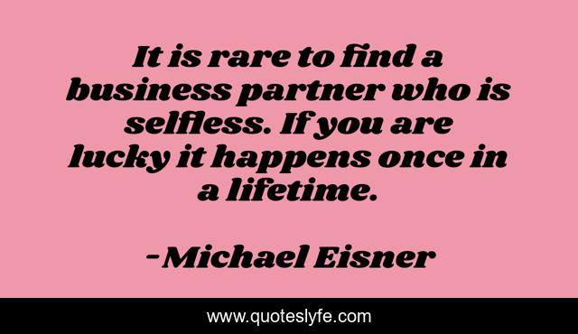 This page presents the quote "It is rare to find a business partner who is selfless. If you are lucky it happens once in a lifetime.". Author of this quote is Michael Eisner. This quote is about partner, leadership,.