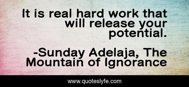 This page presents the quote "It is real hard work that will release your potential.". Author of this quote is Sunday Adelaja, The Mountain of Ignorance. This quote is about life, conversion, productivity, wealth, hard-work, greatness, waste, humanity, product,.