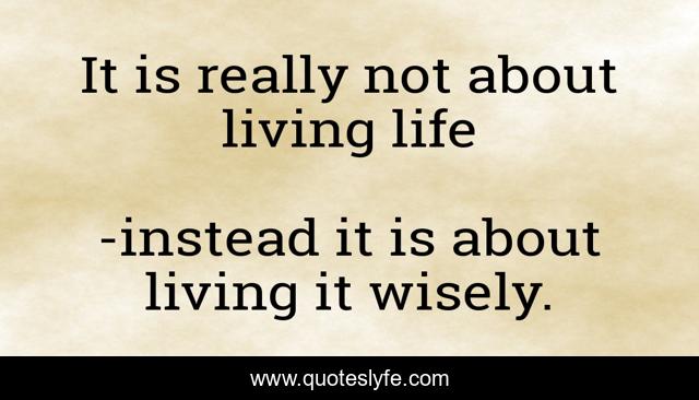 This page presents the quote "It is really not about living life". Author of this quote is instead it is about living it wisely.. .