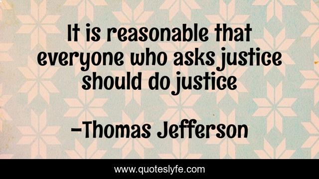 This page presents the quote "It is reasonable that everyone who asks justice should do justice". Author of this quote is Thomas Jefferson. This quote is about justice, ethics, government,.