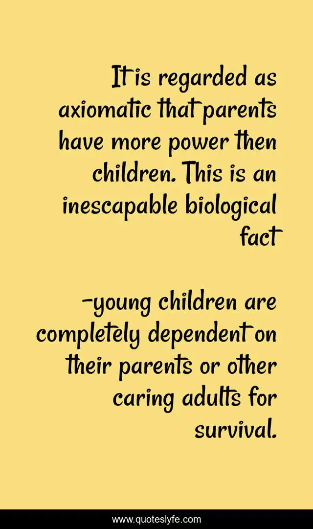"young children are completely dependent on their parents or other caring adults for survival. Quotes." Quoteslyfe.com, 2025. Fri. 05 Dec. 2025. <https://www.quoteslyfe.com/quote/It-is-regarded-as-axiomatic-that-parents-208185>.