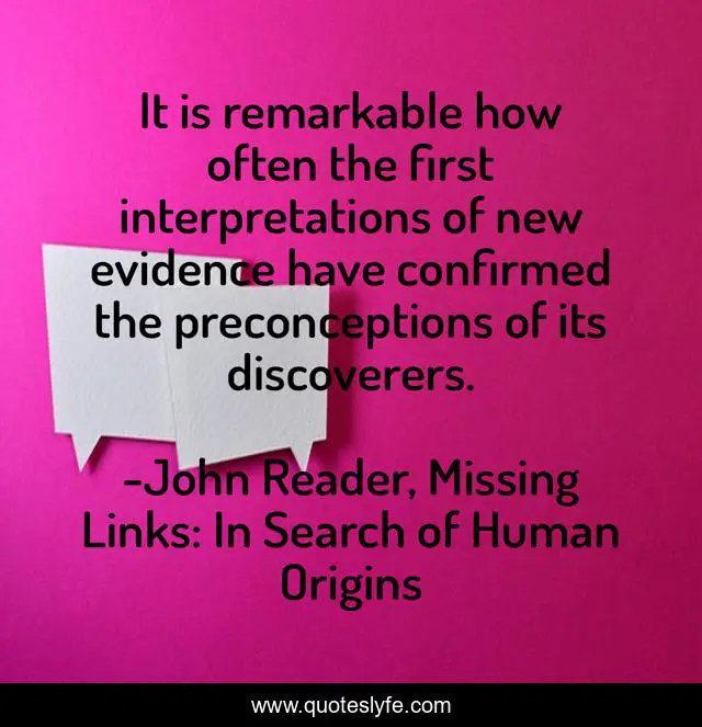 This page presents the quote "It is remarkable how often the first interpretations of new evidence have confirmed the preconceptions of its discoverers.". Author of this quote is John Reader, Missing Links: In Search of Human Origins. This quote is about bias, ego,.