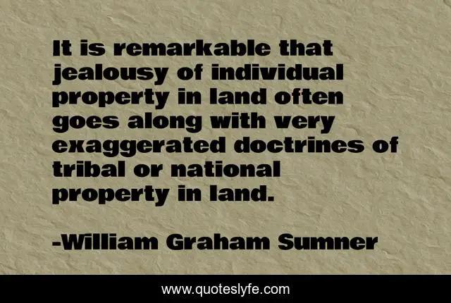 This page presents the quote "It is remarkable that jealousy of individual property in land often goes along with very exaggerated doctrines of tribal or national property in land.". Author of this quote is William Graham Sumner. This quote is about property, individual, land,.