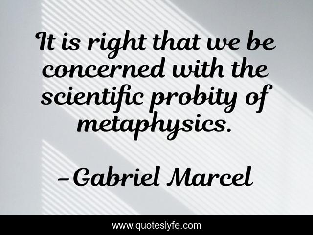 This page presents the quote "It is right that we be concerned with the scientific probity of metaphysics.". Author of this quote is Gabriel Marcel. This quote is about concerned, right, scientific,.