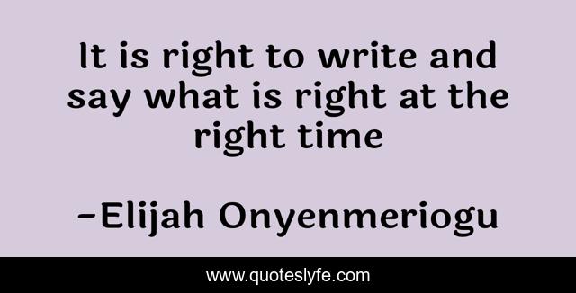 This page presents the quote "It is right to write and say what is right at the right time". Author of this quote is Elijah Onyenmeriogu. This quote is about wright, right,.