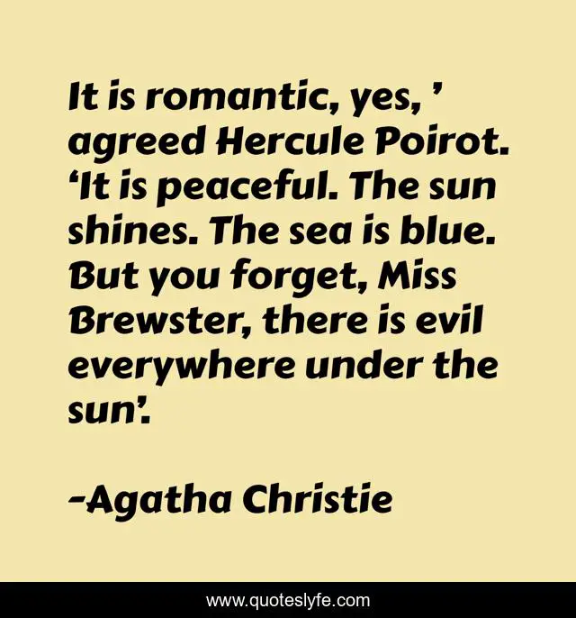 It is romantic, yes, ’ agreed Hercule Poirot. ‘It is peaceful. The sun shines. The sea is blue. But you forget, Miss Brewster, there is evil everywhere under the sun’.