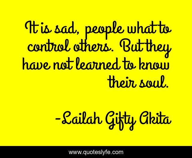 This page presents the quote "It is sad, people what to control others. But they have not learned to know their soul.". Author of this quote is Lailah Gifty Akita. This quote is about humanity-advice, soul, wise-thoughts, people,.