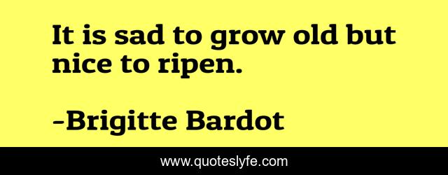 This page presents the quote "It is sad to grow old but nice to ripen.". Author of this quote is Brigitte Bardot. .