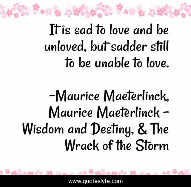 This page presents the quote "It is sad to love and be unloved, but sadder still to be unable to love.". Author of this quote is Maurice Maeterlinck, Maurice Maeterlinck - Wisdom and Destiny, & The Wrack of the Storm. This quote is about unable-to-love, love, unloved, affection, sad,.