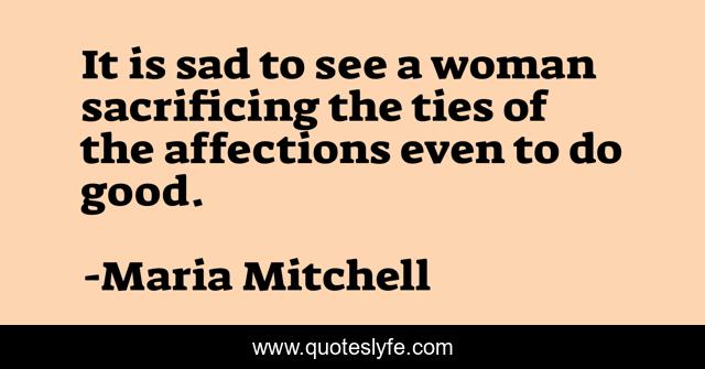 This page presents the quote "It is sad to see a woman sacrificing the ties of the affections even to do good.". Author of this quote is Maria Mitchell. This quote is about good, woman, see,.