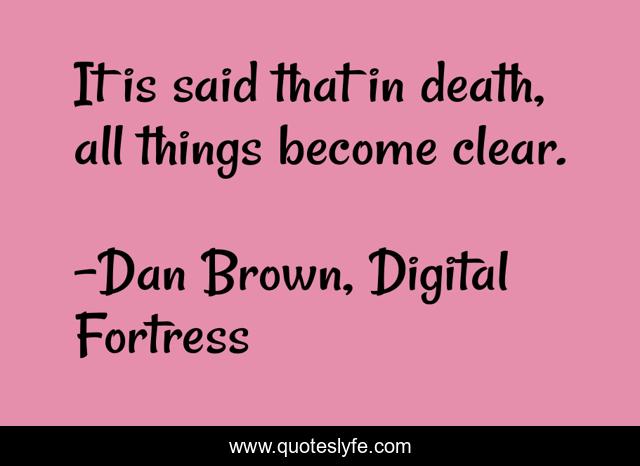 This page presents the quote "It is said that in death, all things become clear.". Author of this quote is Dan Brown, Digital Fortress. .