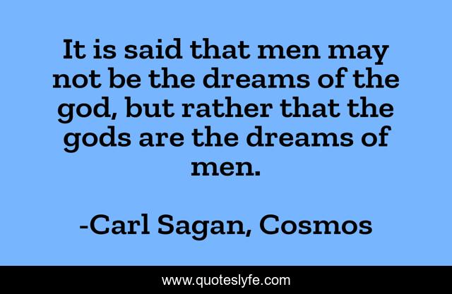 This page presents the quote "It is said that men may not be the dreams of the god, but rather that the gods are the dreams of men.". Author of this quote is Carl Sagan, Cosmos. This quote is about atheism, god, dreams, gods,.