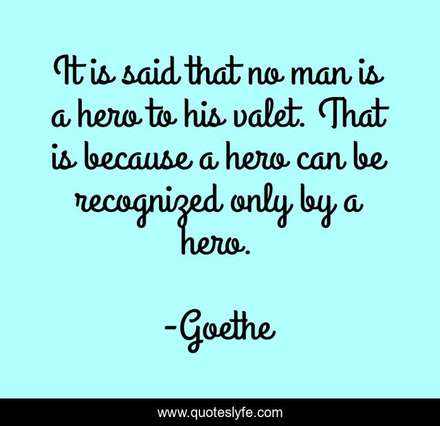 This page presents the quote "It is said that no man is a hero to his valet. That is because a hero can be recognized only by a hero.". Author of this quote is Goethe. This quote is about heroes, heroism,.
