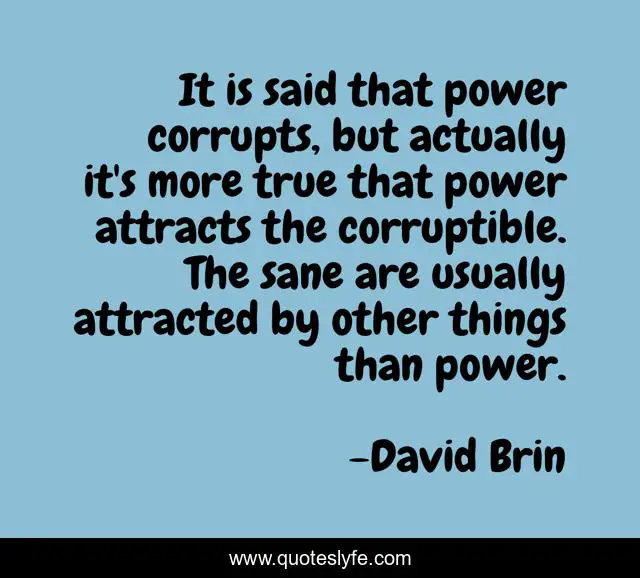 "David Brin Quotes." Quoteslyfe.com, 2025. Fri. 05 Dec. 2025. <https://www.quoteslyfe.com/quote/It-is-said-that-power-corrupts-but-3467>.